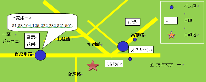 ADD…青島市市南区香港中路110号 リージェンシーホテル後方ビル2階 員工活動室右側 入口入ってエレベーターで2階へどうぞ。 TIME…10:00~21:00 TEL…0532-8865-1788 156-1001-1007 138-8463-8065 銀×→ホテルブロードウェイ側入口奥に中国銀行ATMあり |