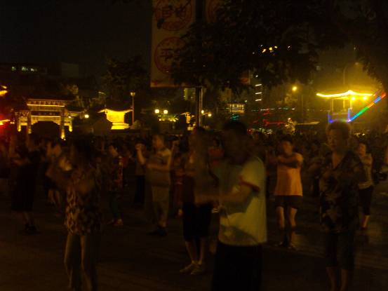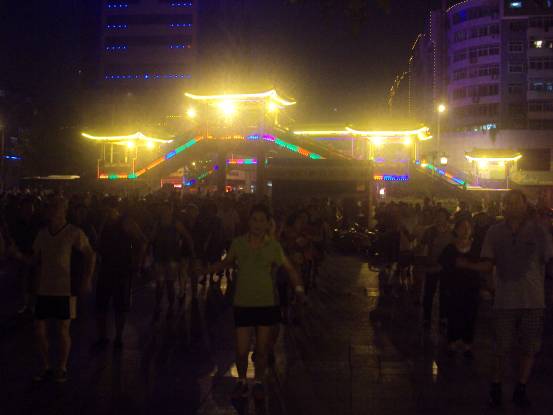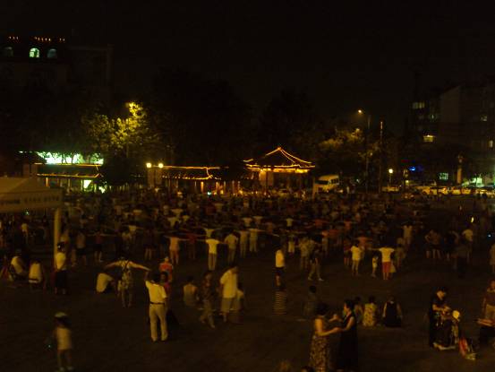 その前の広場では、100人以上のおじちゃんやおばちゃんが集まって、大規模なダンス集会~~。