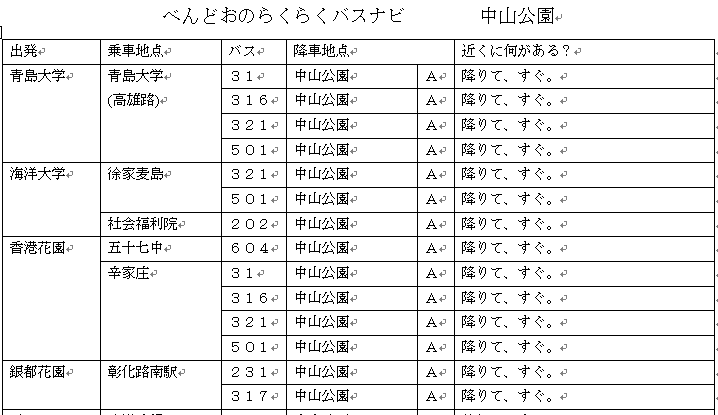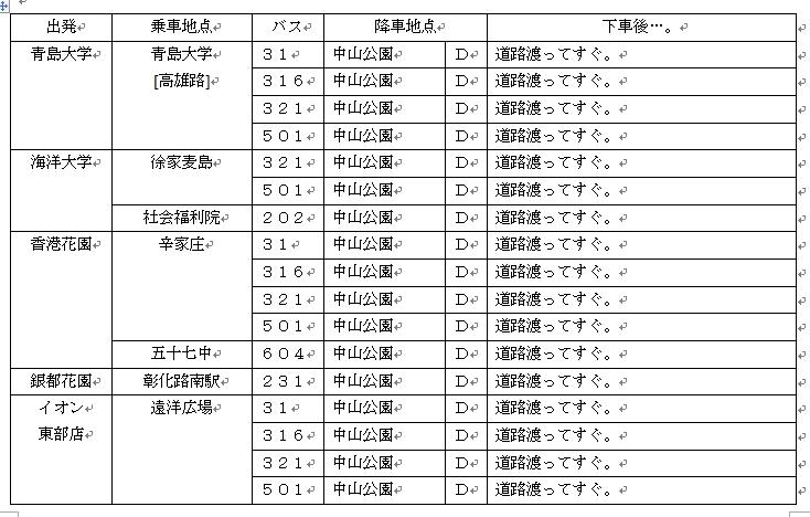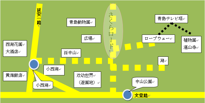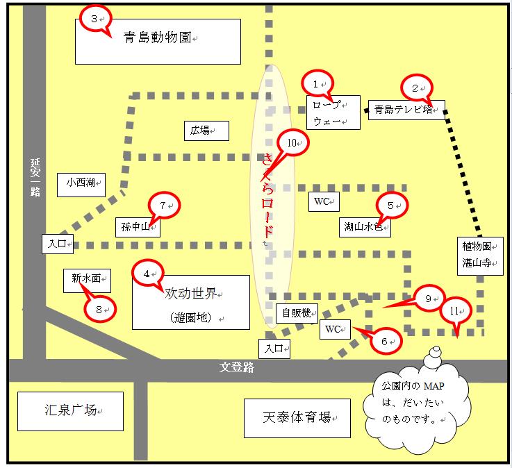 ADD…文登路 TIME…6:00~17:30 TEL…8287-0564 QIAN…無料 BUS …〔青大〕[青島大学]―31,316,321,501→[中山公園] 〔香港花園〕[辛家庄]―31,316,321,501→[中山公園] 〔銀都花園〕[彰化路東駅]―231,317→[中山公園] |