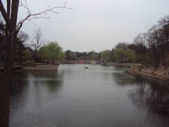 ます。最近、湖の奥の方も徐々に道ができはじめていて、そこを歩くと、公園の中心とは違った静けさを楽しむことができます。ひっそりとしたところに「阿胶亭」という休憩スポットも。