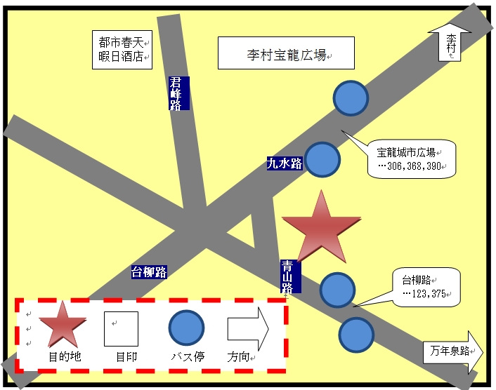 ADD…青島市李蒼区青山路685号 宝龍城市広場向かい TEL…0532—8762—1111 銀聯○ WIFI○ |