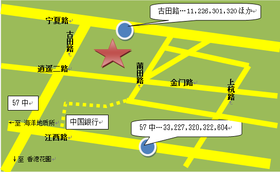 バス:[古田路(寧夏路)]11、320 [古田路(江西路)]33、322 [蒲田路]320