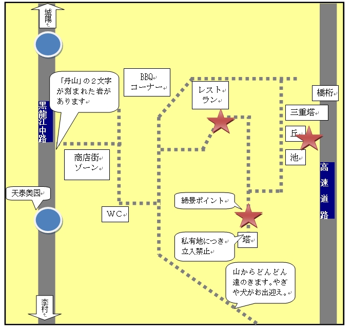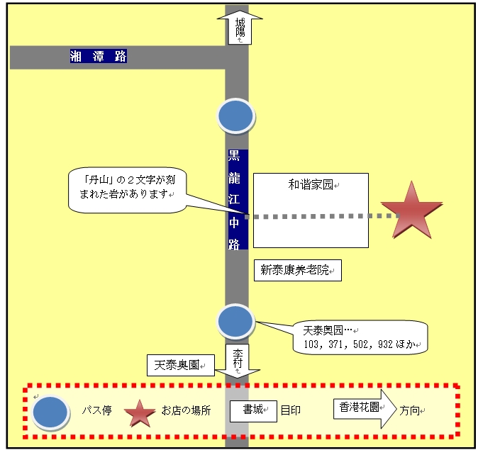 「天泰奥園」バス停でバス下車後、こちらの入口から中の団地へ。団地入口にはスーパーや小さい売店などがずらり。登山の準備はこちらで。