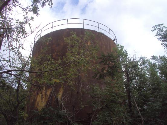 突き当たりは、右へ行くと、タンクや小屋がありますが、だんだん山から離れていってしまうので、左へ。