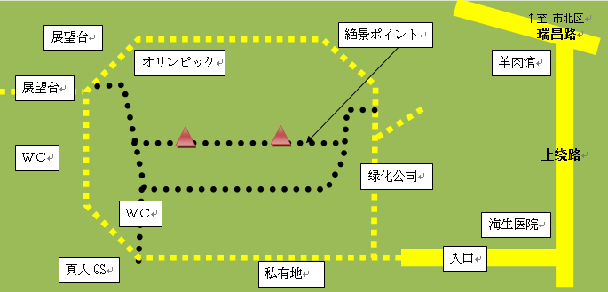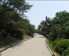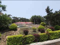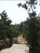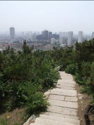 バス停でバスを下りて、上饶路(大福羊汤馆の角)を道なりに登っていくと、前にあります。海抜110.4メートル、公園敷地面積17.98万平米。市内十大山地公園の一つにもなっています。あまり大きな山ではありませんが、頂上からは、360度四方区の街が見渡せます。天気がよかったら、胶州湾はもちろん、海水浴場側の海もみえるかも。
