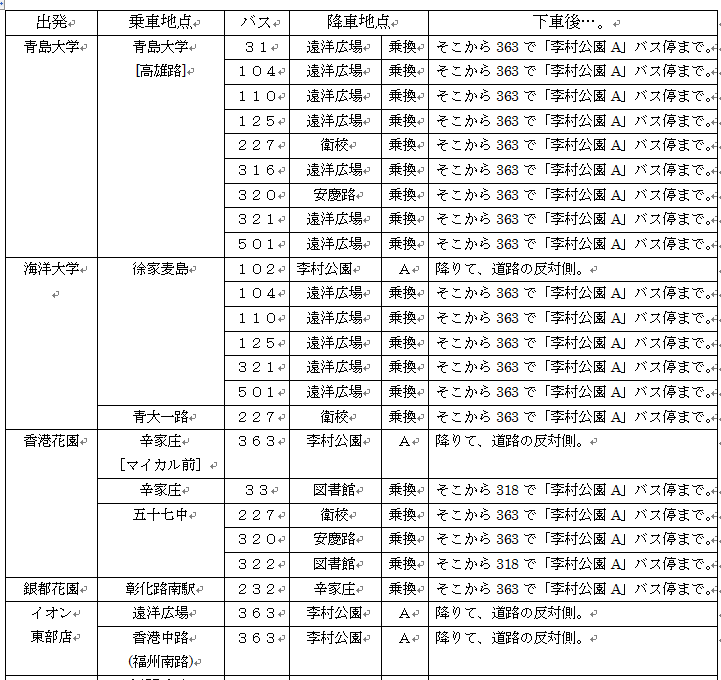 李村公園からのバスの乗り換え