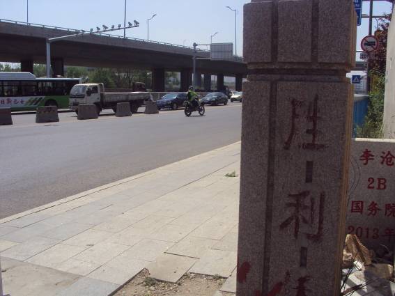「勝利橋」という名前の由来は、その名の通り、四流南路と四流中路の間にある小さい橋。石に刻まれている橋の名前。なんとも力強い。