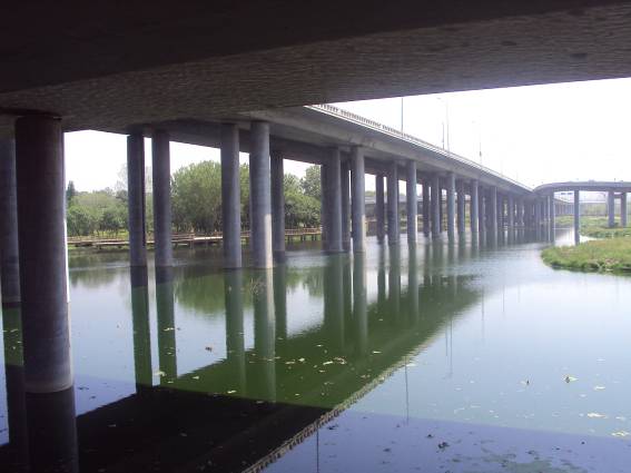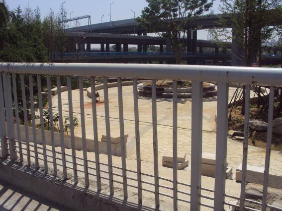 その橋の両側は、河川敷公園。しかし、どこから入ればいいのやら。