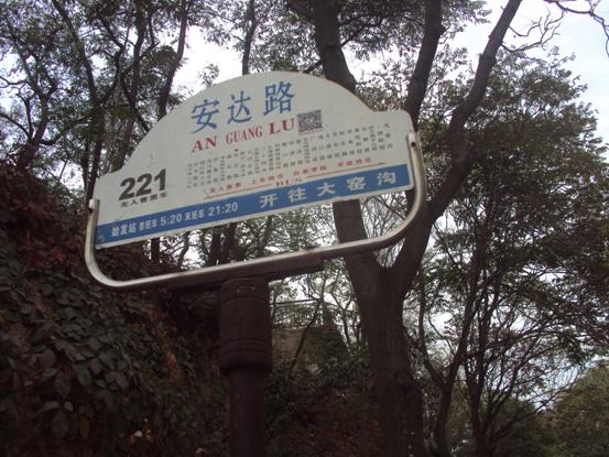 始点「福州路東小区」バス停から221番バスで「安達路(アンダールー)」へ。