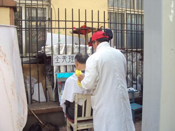 帰り、バス停の近くに青空理容がありました。1人6元。